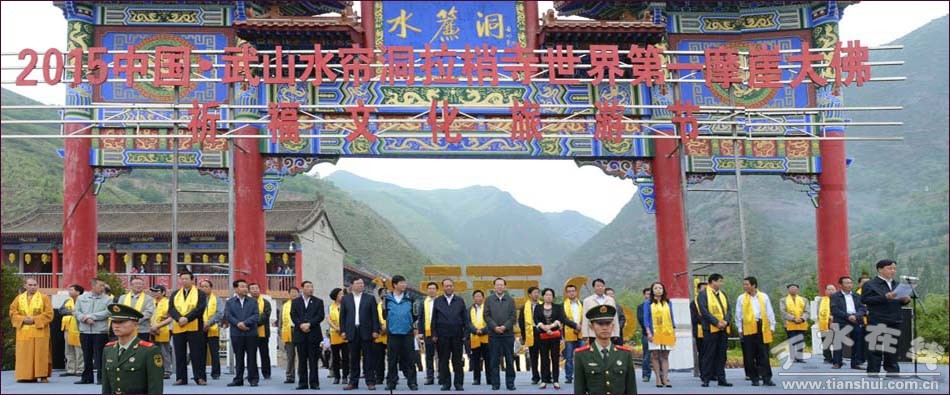 六月的武山,萬(wàn)木蔥蘢,生機(jī)盎然,洞天福地嘉賓云集。23日上午,第五屆敦煌行·絲綢之路國(guó)際旅游節(jié)及2015(乙未)年公祭中華人文始祖伏羲大典暨第二十六屆中國(guó)天水伏羲文化旅游節(jié)分項(xiàng)活動(dòng)——2015中國(guó)·武山水簾洞拉梢寺世界第一摩崖大佛祈福文化旅游節(jié)在國(guó)家4A級(jí)旅游景區(qū)水簾洞隆重開(kāi)幕。來(lái)自全國(guó)各地的嘉賓相聚這里,欣賞美景、祈福納祥。