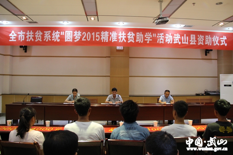 8月31日上午,全市扶貧系統(tǒng)“圓夢2015精準扶貧助學”活動武山縣資助儀式在縣群眾文化服務(wù)中心舉行?h扶貧辦領(lǐng)導班子和受資助的貧困大學生及家長參加儀式。