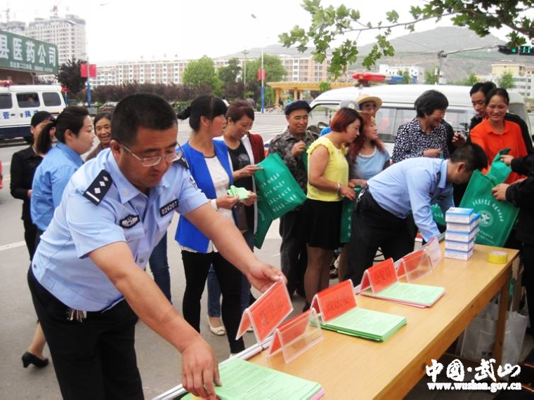 6月15日上午,武山縣禁毒委組織宣傳部、工會、婦聯(lián)、法院、檢察院、公安局、司法局、文廣局、城關(guān)鎮(zhèn)在渭北綜合市場開展了主題為“依法禁毒、構(gòu)建和諧”的大型禁毒宣傳教育活動?h禁毒委副主任、縣委常委、政法委書記王志軍,縣禁毒委副主任、副縣長聶衛(wèi)東及相關(guān)單位負(fù)責(zé)人參加了活動。