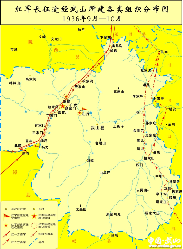 紅軍長征途經(jīng)武山所建的各類組織分布圖(1936年9月——10月)
