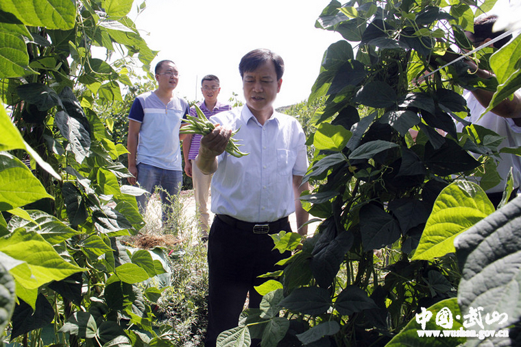 (實(shí)地查看架豆長(zhǎng)勢(shì)情況)