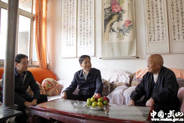 樊榮華老人,長期從事文化工作,于詩書畫均有較深刻的造詣和研究。在樊榮華老人家中,馬勤學(xué)詳細詢問老人的身體和家庭狀況,愉快暢談奮力建設(shè)宜居宜業(yè)宜游武山的美好前景,同時就精準脫貧、文化旅游產(chǎn)業(yè)發(fā)展、項目建設(shè)等工作進行了深入交流。