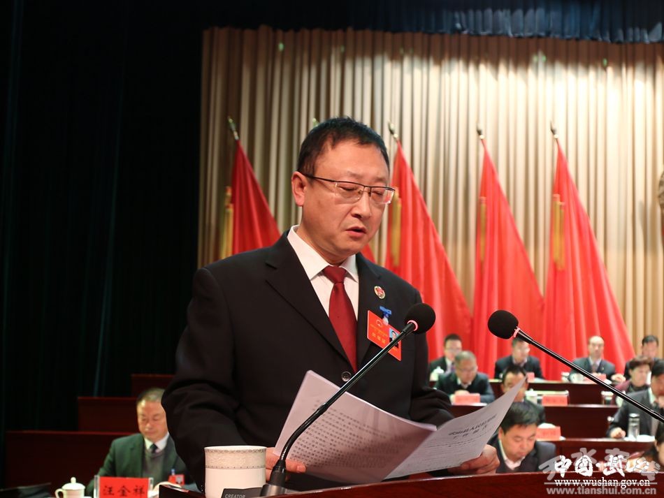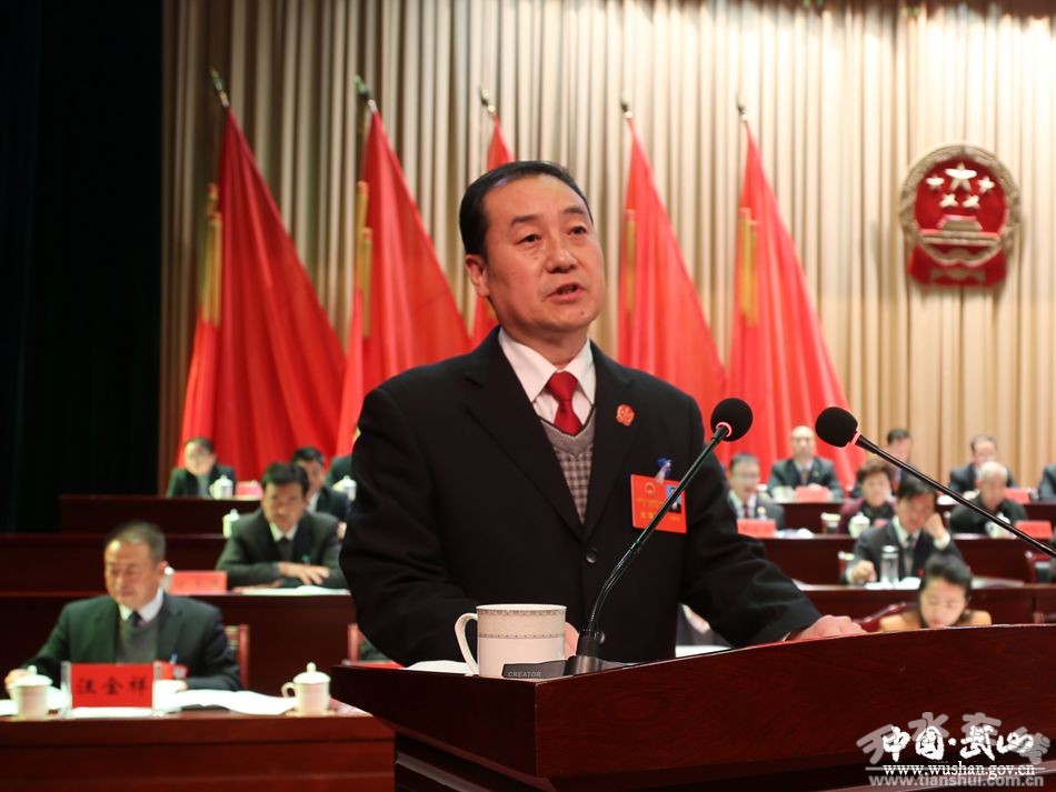 (縣人大常委會主任王永宏受縣十六屆人大常委會委托,向大會作《武山縣人大常委會工作報告》)