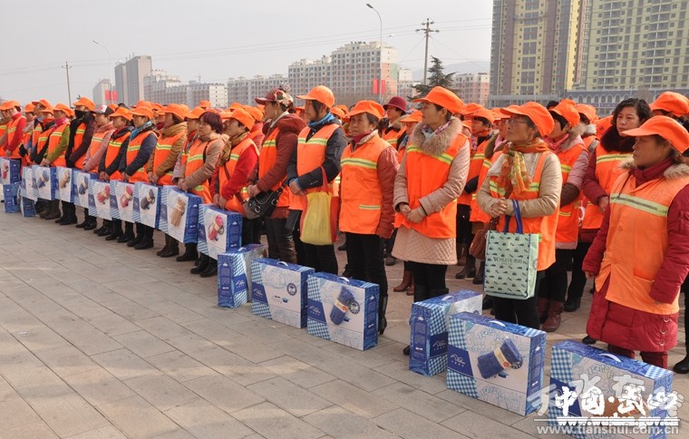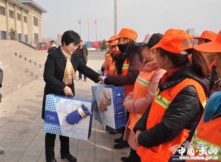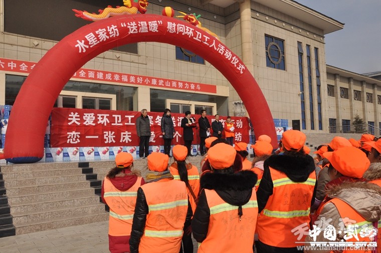 天氣逐漸寒冷,環(huán)衛(wèi)工人忍耐嚴(yán)寒堅(jiān)持工作,保衛(wèi)著城市的環(huán)境。為了關(guān)心慰問工作在一線的環(huán)衛(wèi)工人,12月30日,武山縣在群眾文化活動(dòng)中心廣場舉行慰問環(huán)衛(wèi)工人活動(dòng),縣政府副縣長高春霞出席慰問活動(dòng)并講話,縣總工會(huì)、縣婦聯(lián)、縣建設(shè)等部門負(fù)責(zé)人參加慰問活動(dòng)。水星家紡武山店為全縣280多名環(huán)衛(wèi)工人送去了價(jià)值5萬多元的毛毯、手套等御寒物資。