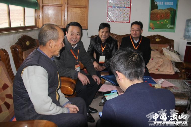 2017年1月1日是第三次全國農(nóng)業(yè)普查入戶登記第一天。當(dāng)天上午,武山縣政府副縣長孫德銀帶領(lǐng)縣農(nóng)普辦工作人員,深入城關(guān)鎮(zhèn)農(nóng)業(yè)普查現(xiàn)場,聽取有關(guān)匯報,查閱相關(guān)資料,全面檢查指導(dǎo)全縣農(nóng)業(yè)普查入戶登記工作。
