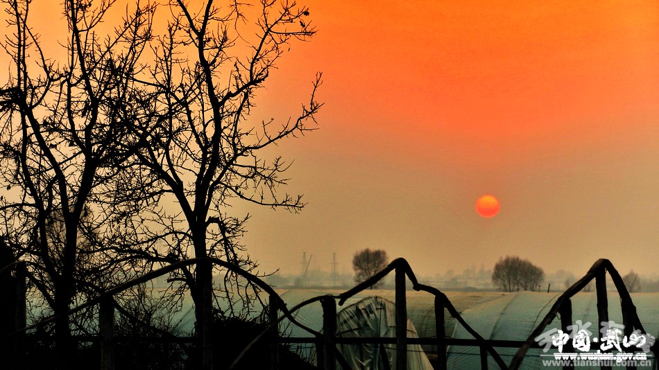 冬日的武山,在廣袤的川道地區(qū),一望無(wú)際的蔬菜塑料大棚錯(cuò)落有致,為無(wú)雪的大地添上一道道美麗的風(fēng)情線。太陽(yáng)落山前,晚霞為冬暖棚涂上一抹抹橘紅的衣裳,如詩(shī)!如畫(huà)。ㄎ/圖 薛耀忠)