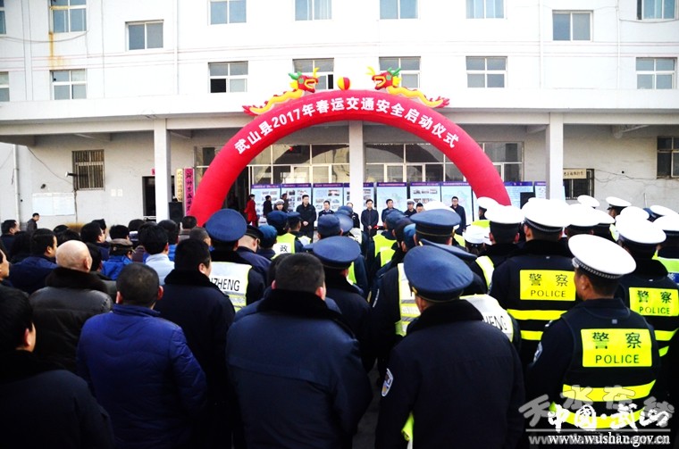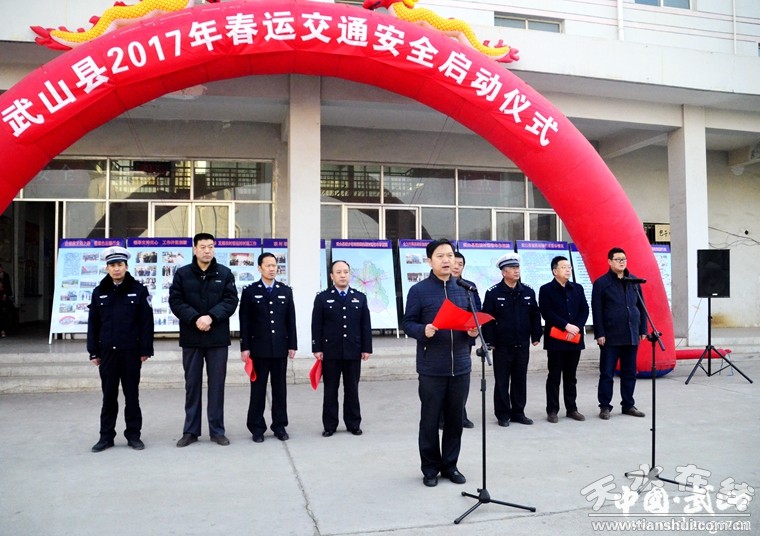 1月13日上午,武山縣舉行2017年春運(yùn)交通安全啟動(dòng)儀式?h委常委、副縣長何敬忠出席儀式并講話。縣公安、安監(jiān)、運(yùn)管、路政、執(zhí)法、交警等相關(guān)單位負(fù)責(zé)人及縣運(yùn)輸企業(yè)負(fù)責(zé)人、客運(yùn)企業(yè)全體工作人員參加了活動(dòng)。