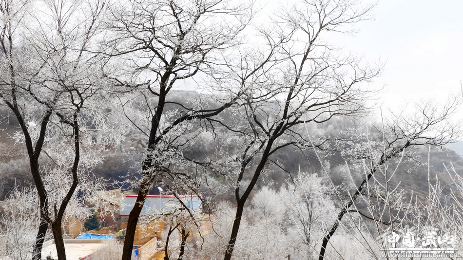 近日,受寒冷空氣影響,位于魯班山地質(zhì)公園的榆盤鎮(zhèn)四灣村(海拔2230米)突現(xiàn)霧凇奇景。整個(gè)村莊銀裝素裹,皓然一色,大地一片空靈寂靜。一根根樹枝上、掛滿了潔白晶瑩的霧凇,靜謐里肆意綻放“曉霧凝霜掛冷枝、銀裝千樹玉冰肌”的驚艷決絕,叫人目不暇接、流連忘返。