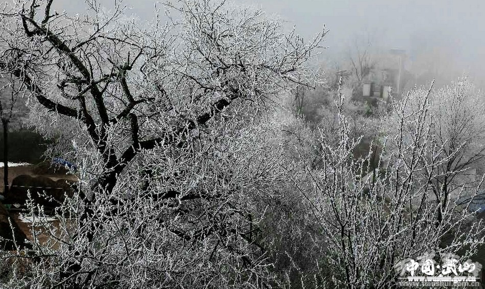 霧凇,俗稱樹掛,此物非冰非雪,是低溫時(shí)空氣中水汽直接凝華,或過冷霧滴直接凍結(jié)在物體上的乳白色冰晶沉積物,是非常難得的自然奇觀。(文/雪舟 圖/雪舟 武山零距離)