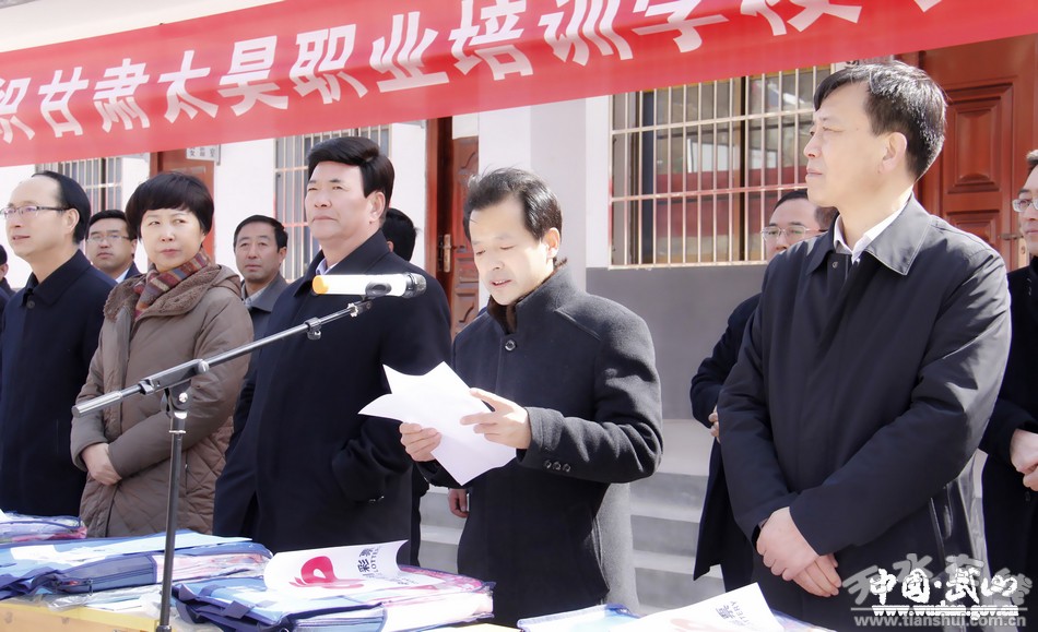 省委政策研究室原副巡視員張治科宣布2016年省級福利彩票公益金支持甘肅太昊職業(yè)培訓(xùn)學(xué)校農(nóng)村困難留守婦女救助關(guān)愛示范項目啟動?h委副書記、縣長馬勤學(xué)代表縣四大組織作了致辭。