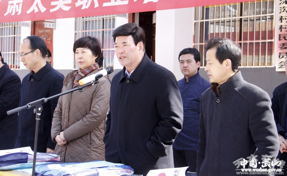 省政協(xié)委員、民革甘肅省委會副主委、西北師范大學(xué)經(jīng)管學(xué)院院長楊立勛,省委政策研究室原副巡視員張治科,省民政廳社會組織管理局副調(diào)研員茍鴻沛,甘肅太昊職業(yè)培訓(xùn)學(xué)校校長莫興邦博士,市人大常委會副主任王曉琴,市政府副市長、民革天水市委會主委霍衛(wèi)平,市政協(xié)副主席王振宇,縣委副書記、縣長馬勤學(xué),縣政協(xié)主席李曉東,縣委副書記閆斌,縣政府副縣長令軍強及80余位農(nóng)村困難留守婦女和社會各界人士參加活動。