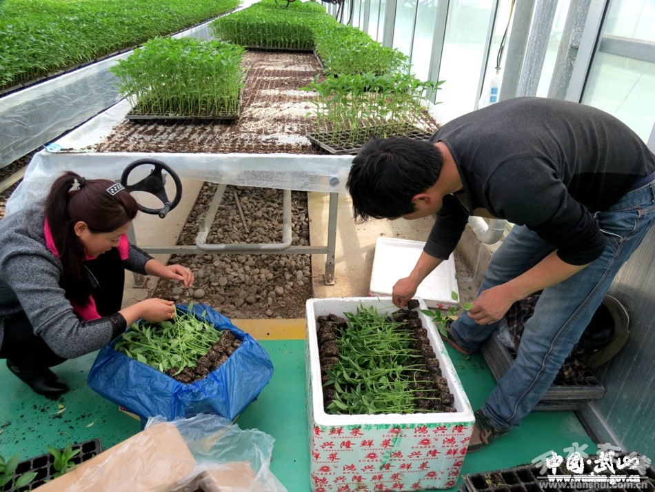 武山蔬菜科技示范園區(qū)是我市著力打造的八大現(xiàn)代農(nóng)業(yè)示范區(qū)之一。目前,園區(qū)已形成了集育苗、種植、交易、貯藏、信息服務(wù)一體化發(fā)展的格局,主要功能有新品種引進、科技研發(fā)、種苗培育、示范引導(dǎo)等,大大加快了蔬菜產(chǎn)業(yè)大縣向現(xiàn)代農(nóng)業(yè)蔬菜強縣的發(fā)展步伐。園區(qū)高級農(nóng)藝師張順林向記者介紹到,園區(qū)苗木成活率100%,而且提前上市10-20天,每畝可增加收入1000元!耙郧白约河,又費時成效又低,現(xiàn)在園區(qū)的蔬菜種苗品種新、抗病性強、成活率高,長勢好,產(chǎn)量高,是我們致富的新希望!闭龔膱@區(qū)拉苗的洛門鎮(zhèn)宋莊村村民宋連娃笑著對記者說。