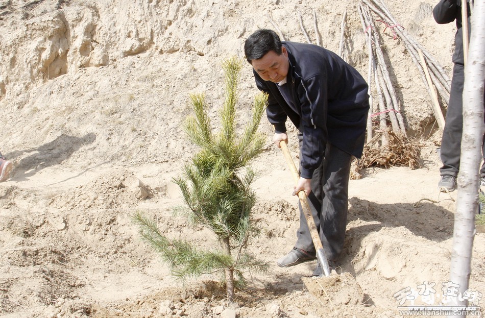 在植樹現(xiàn)場(chǎng),索鴻賓、張璞銀、馬勤學(xué)等縣領(lǐng)導(dǎo)同干部職工一道投入到熱火朝天的植樹活動(dòng)中,挖坑栽苗,揮鍬鏟土,踩實(shí)澆水,每一個(gè)環(huán)節(jié)都認(rèn)真細(xì)致、一絲不茍,將一棵棵樹苗種下,用自己的勞動(dòng)和汗水為春天的武山播下片片新綠。
