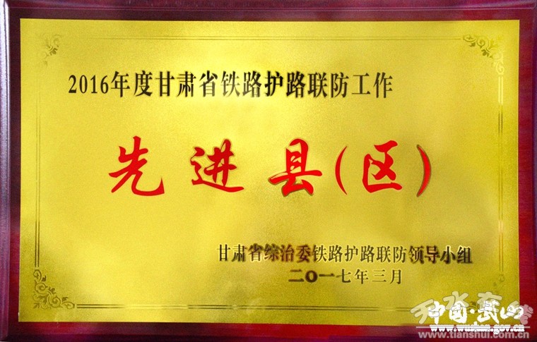 2014年、2015年、2016年武山縣鐵路護路聯(lián)防工作連續(xù)獲得全省鐵路護路聯(lián)防先進縣。