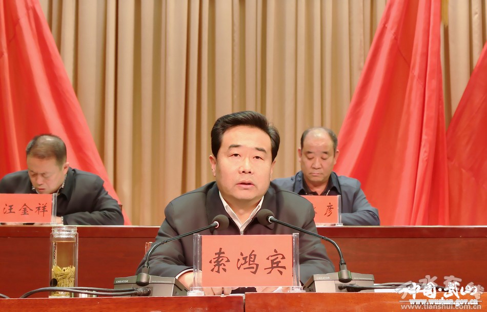 索鴻賓強調(diào),推進全面從嚴治黨必須以工作實績來檢驗。要繼續(xù)堅持以全面從嚴治黨來保障和推動各項事業(yè)發(fā)展、以事業(yè)發(fā)展進步衡量檢驗全面從嚴治黨成效,緊緊圍繞小康武山建設(shè)目標(biāo),大力實施“六大戰(zhàn)略”,全力推動經(jīng)濟社會加快發(fā)展。一要圍繞建設(shè)小康武山,壯大縣域經(jīng)濟,推進脫貧攻堅。以蔬菜為主導(dǎo),推動現(xiàn)代農(nóng)業(yè)提質(zhì)增效;以園區(qū)為支撐,推動工業(yè)經(jīng)濟擴容增量;以旅游為引擎,推動第三產(chǎn)業(yè)提檔升級;把握“精準”要義,下足“繡花”功夫,推動脫貧攻堅縱深開展。二要圍繞建設(shè)幸福武山,改善民生福祉,提高幸福指數(shù)。堅持以人民為中心的發(fā)展思想,從解決群眾最關(guān)心、最直接、最現(xiàn)實問題入手,統(tǒng)籌推進社會事業(yè),著力保障改善民生,全力維護社會穩(wěn)定,切實增強人民群眾獲得感和幸福感。三要圍繞建設(shè)活力武山,推進開放開發(fā),激發(fā)內(nèi)生動力。堅持抓項目保投資,廣謀劃精招商,重改革增活力,不斷夯實發(fā)展基礎(chǔ)、增強發(fā)展活力。四要圍繞建設(shè)美麗武山,統(tǒng)籌城鄉(xiāng)一體,優(yōu)化人居環(huán)境。圍繞打造“綠色宜居武山”,統(tǒng)籌推進城鄉(xiāng)發(fā)展,著力改善城鄉(xiāng)人居環(huán)境,加強生態(tài)文明建設(shè),切實增強可持續(xù)發(fā)展能力。