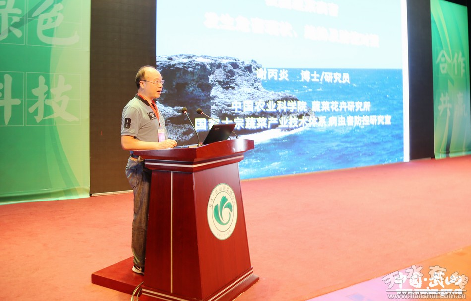 (中國農(nóng)科院蔬菜花卉研究所研究員、植保室主任謝丙炎作題為《我國蔬菜病害發(fā)生危害現(xiàn)狀、趨勢(shì)及防控對(duì)策》的主題報(bào)告)