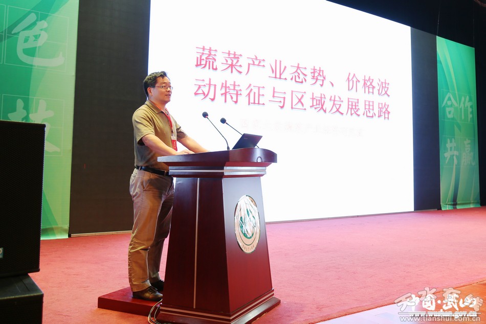 報(bào)告會(huì)上,圍繞促進(jìn)蔬菜產(chǎn)業(yè)發(fā)展和“綠色、安全、合作、共贏”主題,中國工程院院士、沈陽農(nóng)業(yè)大學(xué)副校長李天來,中國農(nóng)產(chǎn)品市場協(xié)會(huì)研究員、副會(huì)長吳秀媛,中國農(nóng)科院蔬菜花卉研究所研究員、植保室主任謝丙炎,西北農(nóng)林科技大學(xué)園藝學(xué)院設(shè)施農(nóng)業(yè)系主任、國家大宗蔬菜產(chǎn)業(yè)技術(shù)體系崗位專家李建明,國家大宗蔬菜產(chǎn)業(yè)技術(shù)體系產(chǎn)業(yè)經(jīng)濟(jì)研究室主任、華中農(nóng)業(yè)大學(xué)MBA中心主任項(xiàng)朝陽,甘肅農(nóng)業(yè)大學(xué)副校長、中國園藝學(xué)會(huì)常務(wù)理事、甘肅省園藝學(xué)會(huì)理事長郁繼華分別作了題為《我國設(shè)施蔬菜的發(fā)展方向》、《互聯(lián)網(wǎng)+扶貧攻堅(jiān)的理論與實(shí)踐》、《我國蔬菜病害發(fā)生危害現(xiàn)狀、趨勢(shì)及防控對(duì)策》、《供給側(cè)改革下設(shè)施農(nóng)業(yè)發(fā)展局勢(shì)與分析》《蔬菜產(chǎn)業(yè)態(tài)勢(shì)、價(jià)格波動(dòng)特征與區(qū)域發(fā)展思路》、《蔬菜產(chǎn)業(yè)現(xiàn)狀、問題及發(fā)展趨勢(shì)》的主題報(bào)告。國家大宗蔬菜產(chǎn)業(yè)技術(shù)體系首席科學(xué)家、中國園藝學(xué)會(huì)理事長杜永臣作了致辭;武山縣委副書記、縣長馬勤學(xué)致歡迎辭;與會(huì)人員觀看了《“西部菜鄉(xiāng)”的美麗傳奇—武山蔬菜產(chǎn)業(yè)發(fā)展紀(jì)實(shí)》宣傳片。