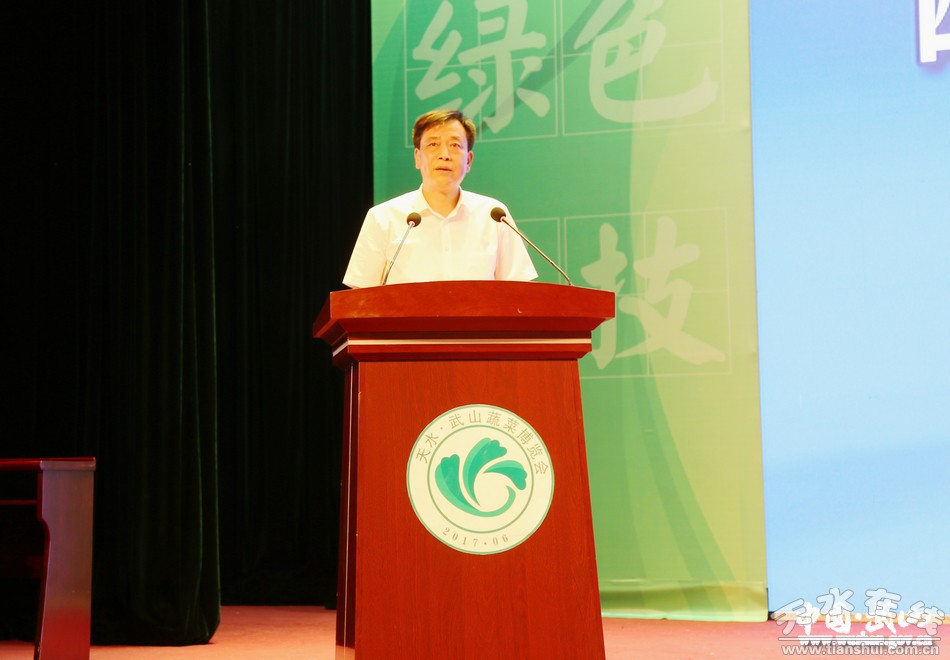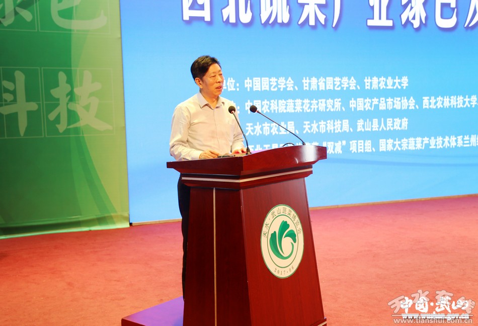 杜永臣代表中國園藝學(xué)會(huì)向論壇的成功舉辦表示衷心祝賀。他說,舉辦西北蔬菜產(chǎn)業(yè)綠色發(fā)展武山論壇,是中國園藝學(xué)會(huì)、甘肅農(nóng)業(yè)大學(xué)、甘肅省園藝學(xué)會(huì)對(duì)武山縣蔬菜產(chǎn)業(yè)發(fā)展成果的充分肯定。武山土壤肥沃、水源豐富、光照充足,是蔬菜的最佳種植區(qū)。近年來,武山縣依托區(qū)位和自然優(yōu)勢(shì),積極探索創(chuàng)新,嚴(yán)格執(zhí)行標(biāo)準(zhǔn)化生產(chǎn)規(guī)程,扎實(shí)實(shí)施“雙減”項(xiàng)目,探索出了蔬菜輪作倒茬、生物防治、農(nóng)家肥施用和韭根腐熟還田等綠色生態(tài)種植模式,在甘肅率先建立了質(zhì)量檢驗(yàn)檢測和安全追溯體系,走出了一條創(chuàng)新、綠色、安全的蔬菜產(chǎn)業(yè)發(fā)展路子,成為享譽(yù)全國的蔬菜種植大縣。希望武山縣繼續(xù)發(fā)揮優(yōu)勢(shì),加大先進(jìn)技術(shù)推廣,延伸蔬菜產(chǎn)業(yè)鏈,注重品牌建設(shè),促進(jìn)全縣蔬菜產(chǎn)業(yè)綠色可持續(xù)發(fā)展,為甘肅乃至全國蔬菜產(chǎn)業(yè)綠色發(fā)展提供借鑒。