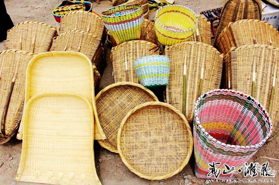 灘歌被譽(yù)為“山貨之鄉(xiāng)”,每逢集日,十里八村的鄉(xiāng)民涌向集鎮(zhèn),頗具地域特色的山貨更是擺滿市街。灘歌竹編久負(fù)盛名,而且各村主打產(chǎn)品分明,如溝門、觀下、下街等村主要編竹席,王家磨、水峪溝、窯上、崖灣等村主要編背篼。竹編產(chǎn)品原先以背篼、席、笸籮、簸箕、篩、籃等生產(chǎn)生活用具為主。隨著時(shí)代的發(fā)展和農(nóng)業(yè)生產(chǎn)生活方式的改變,作為生產(chǎn)工具的竹編產(chǎn)品日漸萎縮,而鳥籠、蟈蟈籠與飾品擺件等工藝品則日益紅火。