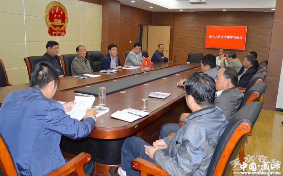 9月25日,武山縣人大機(jī)關(guān)召開(kāi)專題學(xué)習(xí)會(huì)議,傳達(dá)學(xué)習(xí)縣委中心組學(xué)習(xí)會(huì)議精神?h人大常委會(huì)黨組書(shū)記、主任張璞銀,黨組成員、副主任康志鋒、蔡永彥、張國(guó)華、謝勇,各專委會(huì)、辦公室、各工委負(fù)責(zé)人和機(jī)關(guān)其他干部職工參加會(huì)議。