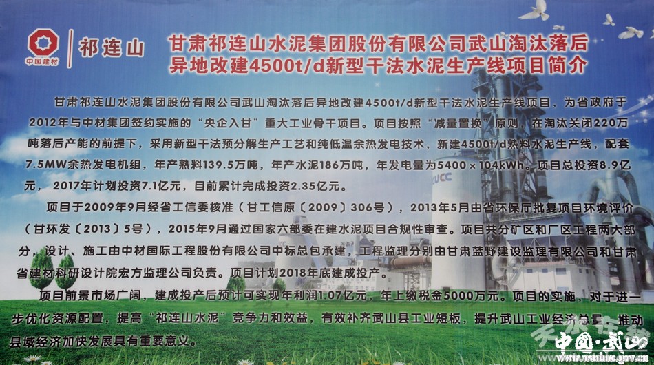 中國建材祁連山集團武山干法水泥生產(chǎn)線技改遷建項目是2012年省政府與中材集團簽約引進的“央企入甘”項目之一,也是市政府確定的重點推進工業(yè)項目。該項目由央企中材集團甘肅祁連山水泥集團公司根據(jù)企業(yè)實際情況,采取“減量置換”的辦法,淘汰關(guān)閉位于鴛鴦鎮(zhèn)的落后生產(chǎn)線,并在馬力鎮(zhèn)新建新型干法水泥生產(chǎn)線。該項目的實施,對于進一步優(yōu)化資源配置,提高企業(yè)競爭力和效益,提升工業(yè)經(jīng)濟總量,推動縣域經(jīng)濟加快發(fā)展具有重要意義。 |