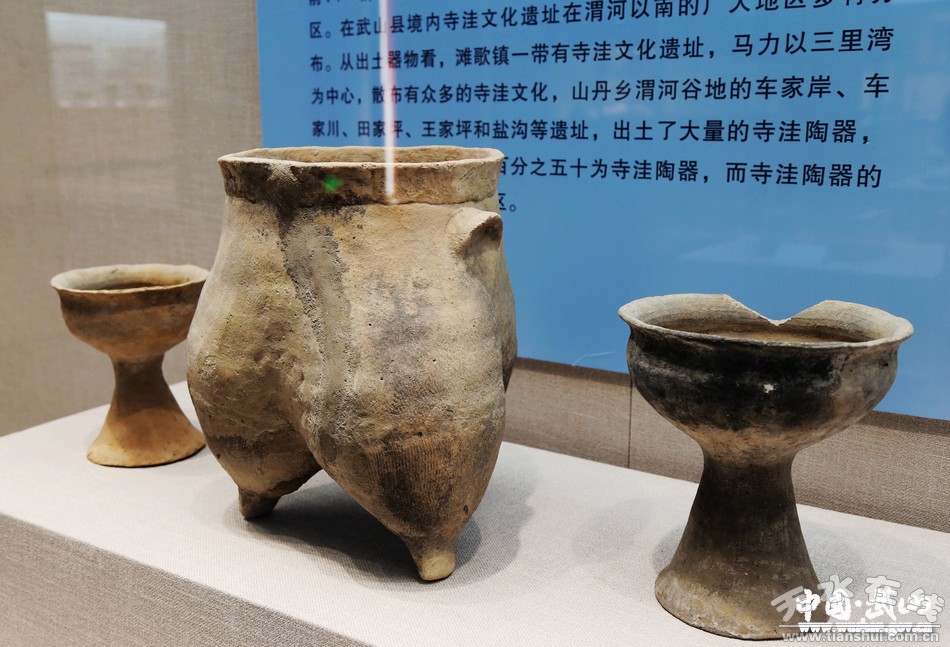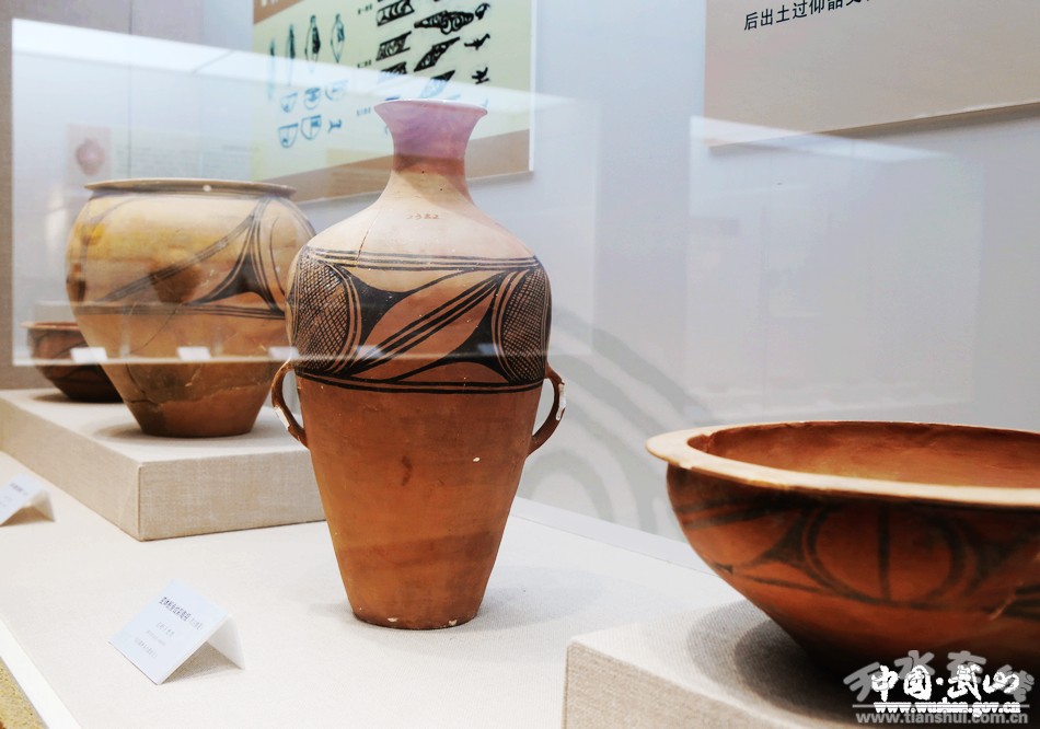 9.武山縣博物館是我縣唯一的國有文物收藏單位,各類文物及標(biāo)本5000多件,古錢幣2萬余枚,有珍貴文物近200余件(一級(jí)6件、二級(jí)32件)。博物館藏品中200多萬年前的劍齒象化石、披毛犀化石,舊石器時(shí)代的“武山人”頭骨化石,新石器時(shí)代的陶器(尤以石嶺下彩陶馳名中外,鯢魚紋彩陶瓶紋飾中的“鯢魚”是中華遠(yuǎn)古龍圖騰最早的祖形;變體鳥頭紋彩陶甕“變體鳥頭紋”是我國新石器時(shí)期唯一具有鳳凰鳥“三羽冠”特征的紋飾,因此被學(xué)界認(rèn)為是中華鳳文化的最早雛形),戰(zhàn)國時(shí)的青銅器,漢代陶莊院,唐代鎏金鑲銀銅碗、鳳首壺,宋金彩繪、模印畫像磚,元代琉璃舍利塔,明清佛教造像等都是本館特色鮮明的藏品。武山博物館收藏有近現(xiàn)代名人董必武、郭沫若、胡厥文、啟功、潘天壽、沙孟海等人的85件套書畫作品(其中康務(wù)學(xué)先生捐贈(zèng)的有73件套)。這些地域文化濃厚,數(shù)量眾多、種類齊全的藏品,從各個(gè)不同的角度反映了古代先祖在這塊土地上居住生活、繁衍生息的奮斗歷程,是研究武山乃至渭河流域歷史的重要實(shí)物資料。