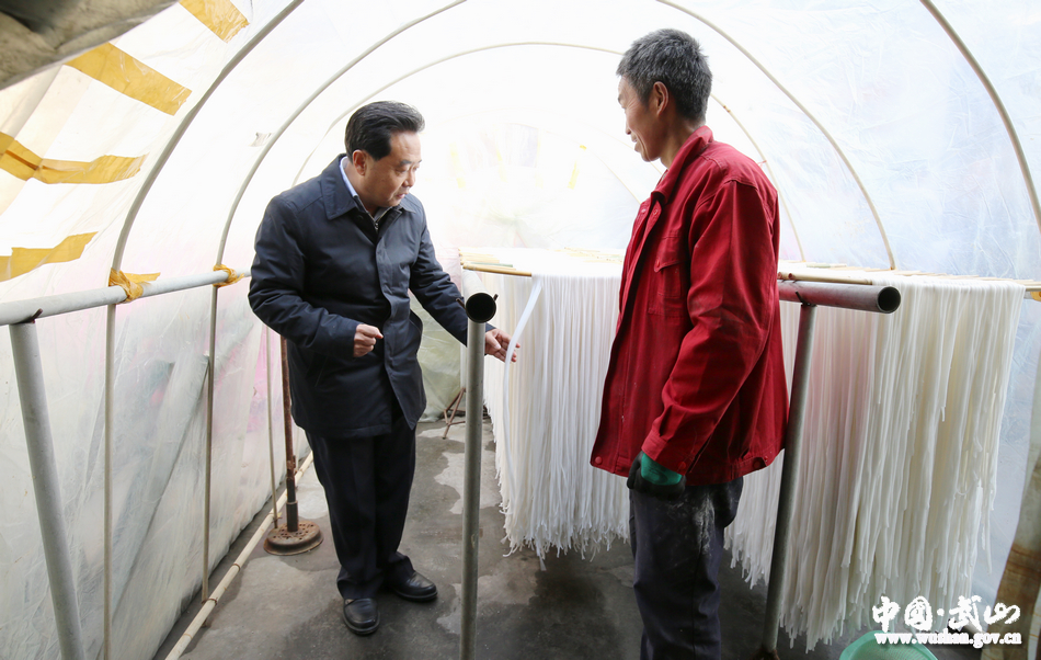 楊貴林是金川村粉條加工個體戶,索鴻賓來到他的家中,與他親切交流,仔細詢問粉條生產流程、銷售渠道,看到他用自己的勤勞致富,索鴻賓甚是欣慰,并鼓勵他要不斷擴大規(guī)模,積極向鄰居和貧困群眾介紹致富門路和成功經驗,切實當好致富排頭兵。