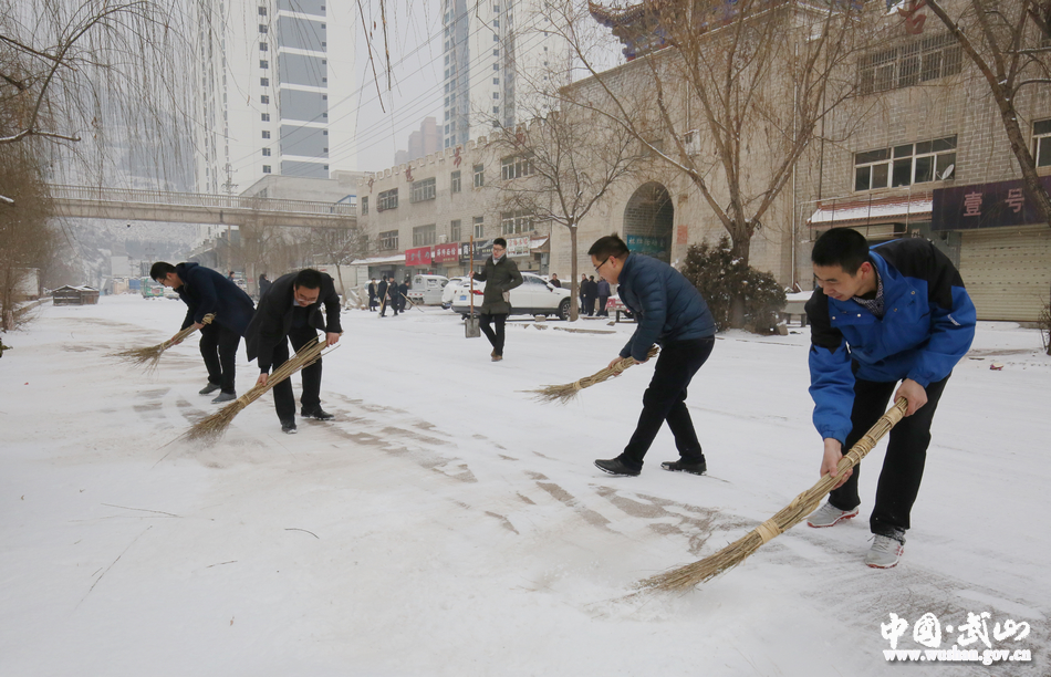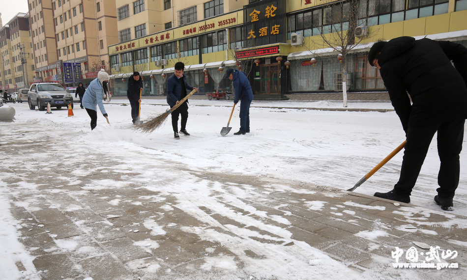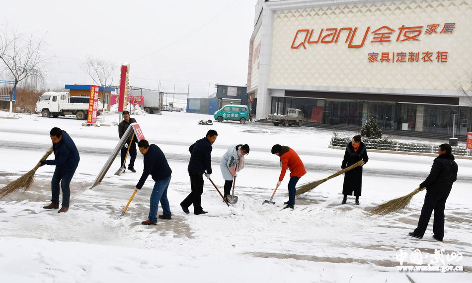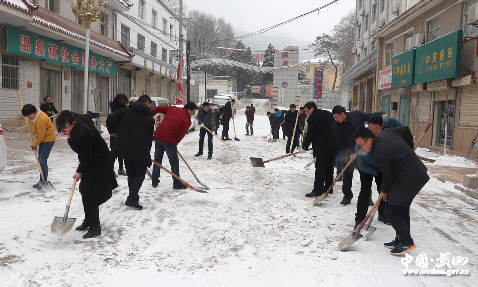 (溫泉鎮(zhèn)黨員干部清掃鎮(zhèn)區(qū)道路積雪)