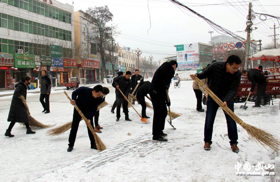 (四門鎮(zhèn)黨員干部清掃鎮(zhèn)區(qū)道路積雪)