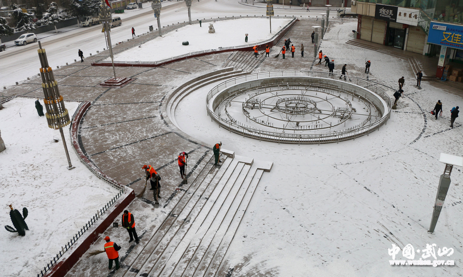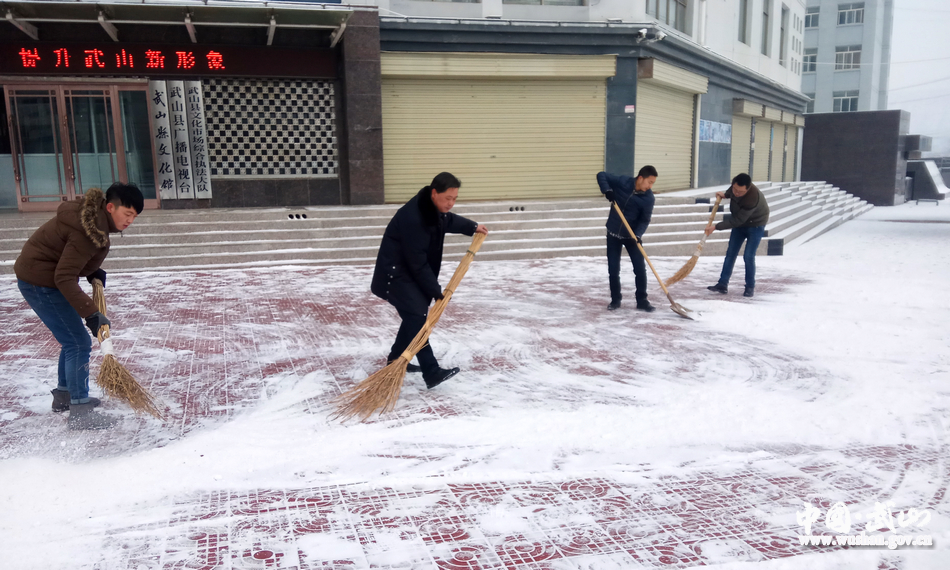 (縣建設局組織黨員干部、環(huán)衛(wèi)工人清掃寧遠廣場積雪)