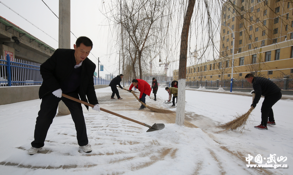 受強冷空氣影響,武山縣境內普降大雪,路面積雪嚴重,給廣大群眾出行帶來不便。為盡快通暢道路,確保行人出行,1月25日上午,在大雪停止后,武山縣迅速組織廣大黨員干部職工走上街頭,積極清掃道路積雪,確保百姓出行安全。