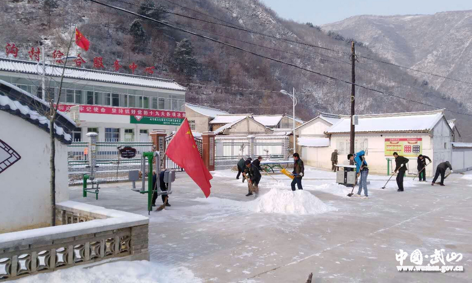 (楊河鎮(zhèn)安溝村群眾清掃村陣地積雪) |