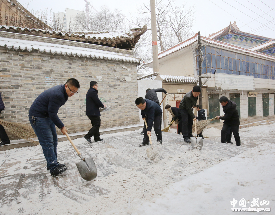 (縣蔬菜局黨員干部清掃包干路段積雪)