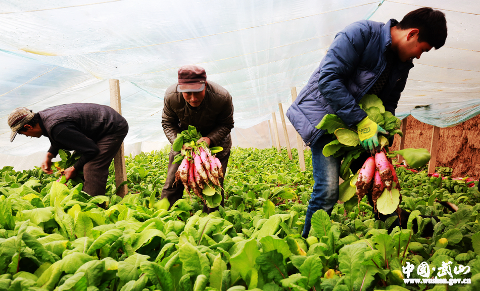 近年來,武山縣堅持把產(chǎn)業(yè)扶貧作為促進群眾脫貧致富的有力抓手,因地制宜扶持發(fā)展多元富民產(chǎn)業(yè),特別是發(fā)揮渭河川道區(qū)日照充足、土壤肥沃、水資源豐富的優(yōu)勢,在新龍、曲里、下康、北街等村大力發(fā)展水蘿卜、西紅柿、辣椒等反季節(jié)蔬菜,引導群眾更新品種,改進管理技術,實行無公害生產(chǎn)、包裝式銷售,有力提升了蔬菜生產(chǎn)質量和效益。今年水蘿卜大量豐收,一畝大棚預計產(chǎn)量達5000—6000斤,收入達1.5萬元左右,助農(nóng)脫貧增收效果明顯。