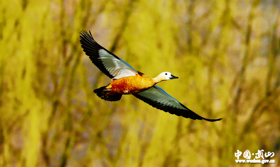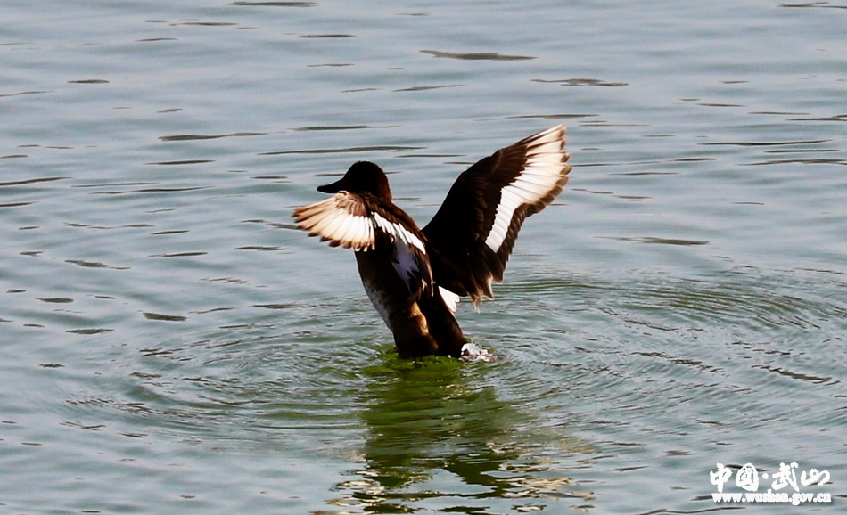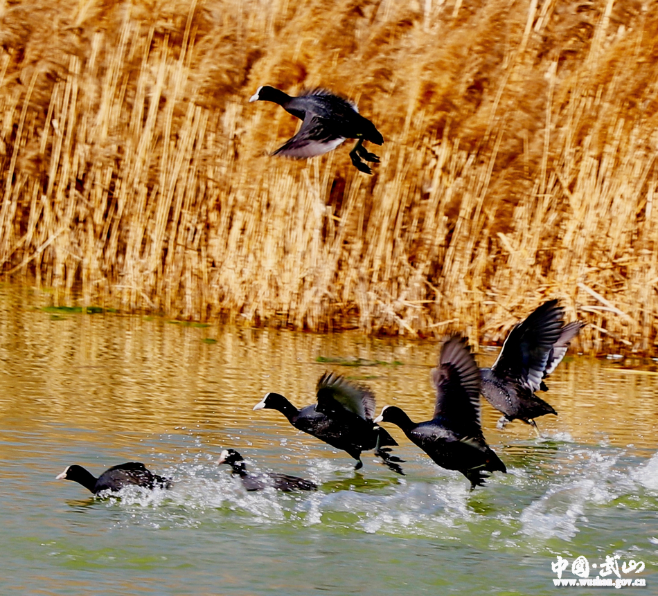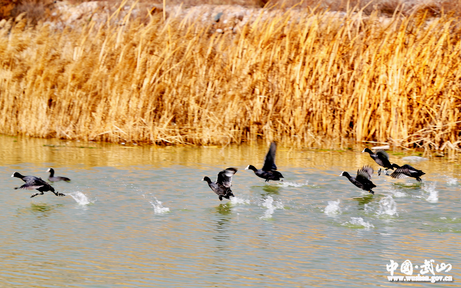 如今每年都會(huì)有大批的白鷺、白骨頂雞、赤麻鴨、赤膀鴨、斑嘴鴨、白眼潛鴨、林鷸、鹮嘴鷸等鳥類來(lái)這里遷徙中轉(zhuǎn)和繁衍棲息,鴛鴦湖公園內(nèi)外、村邊的溪流旁邊鳥兒們自由自在地飛翔、嬉水、覓食、歌唱……一個(gè)個(gè)靈巧的身影,一對(duì)對(duì)舞動(dòng)的翅膀,一聲聲吟唱的啾鳴,打破了水面舒緩的幽靜,展現(xiàn)著人與自然和諧共生的美麗風(fēng)景。(攝影/薛東霞)