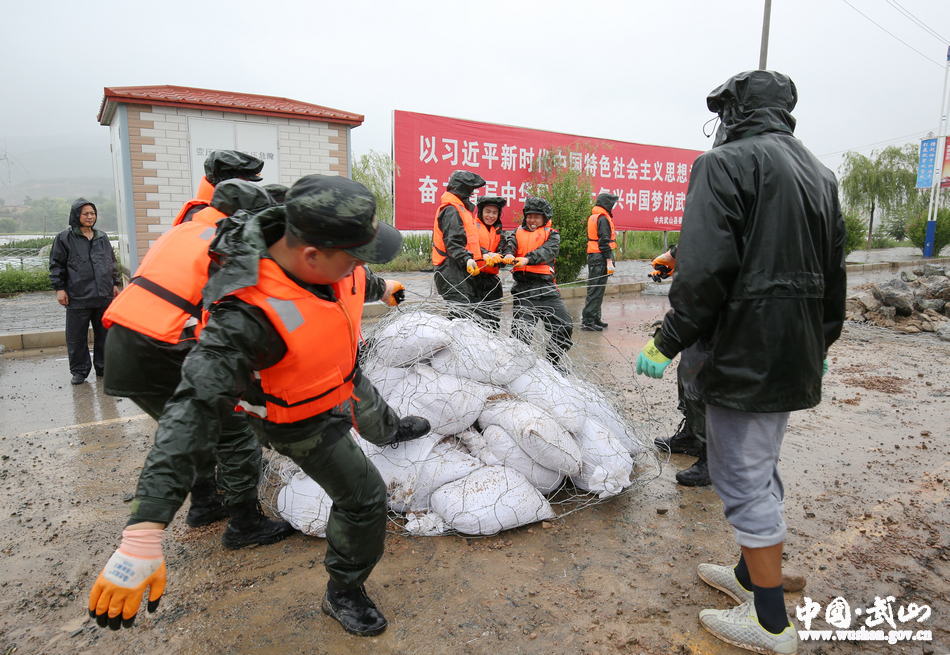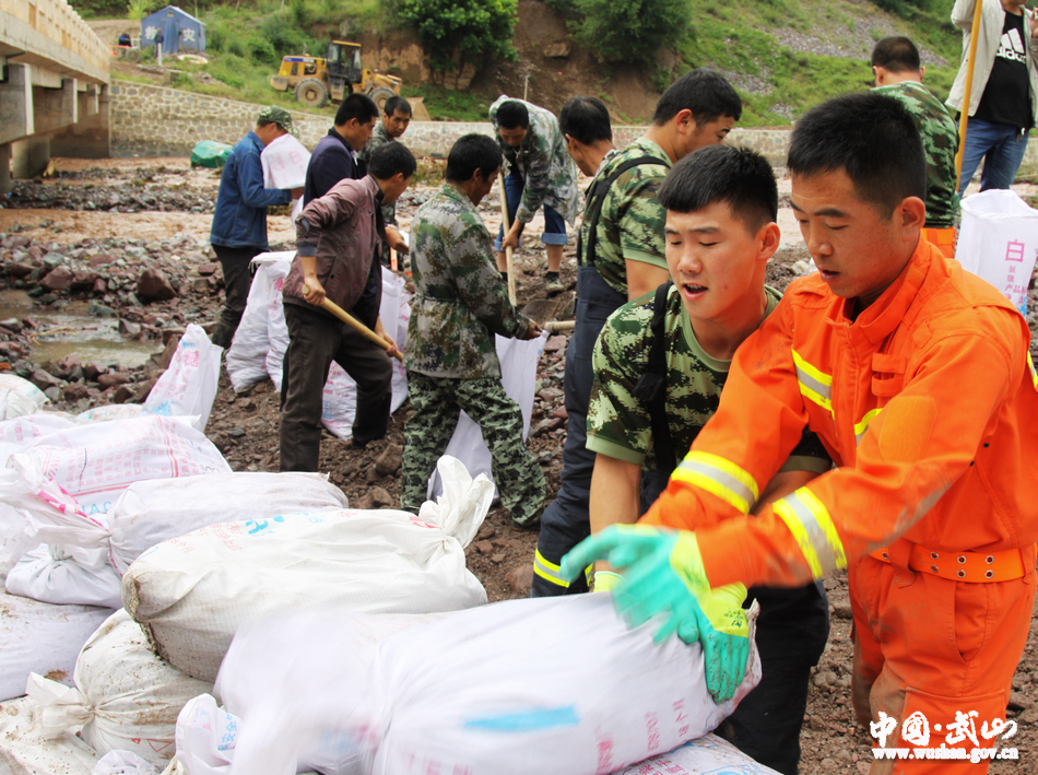 7月1日18時至7月2日10時,武山縣出現(xiàn)強降雨天氣過程,局部最大降水達(dá)124.4mm,加之上游下泄洪水劇增,縣內(nèi)渭河及其支流出現(xiàn)50年未遇特大洪水,造成全縣15個鄉(xiāng)鎮(zhèn)不同程度受災(zāi)。暴洪災(zāi)害發(fā)生后,廣大官兵火速馳援一線搶險救災(zāi),災(zāi)情現(xiàn)場官兵們充分發(fā)揚不怕疲勞、不畏艱險、連續(xù)作戰(zhàn)的頑強作風(fēng),發(fā)揮了主力軍和突擊隊的作用,承擔(dān)了大量急難險重任務(wù),積極搶修水毀道路橋梁、河堤、公路等基礎(chǔ)設(shè)施,有效遏制了災(zāi)情繼續(xù)擴(kuò)大,在搶險救災(zāi)中做出了積極貢獻(xiàn),保護(hù)了人民群眾生命財產(chǎn)安全。