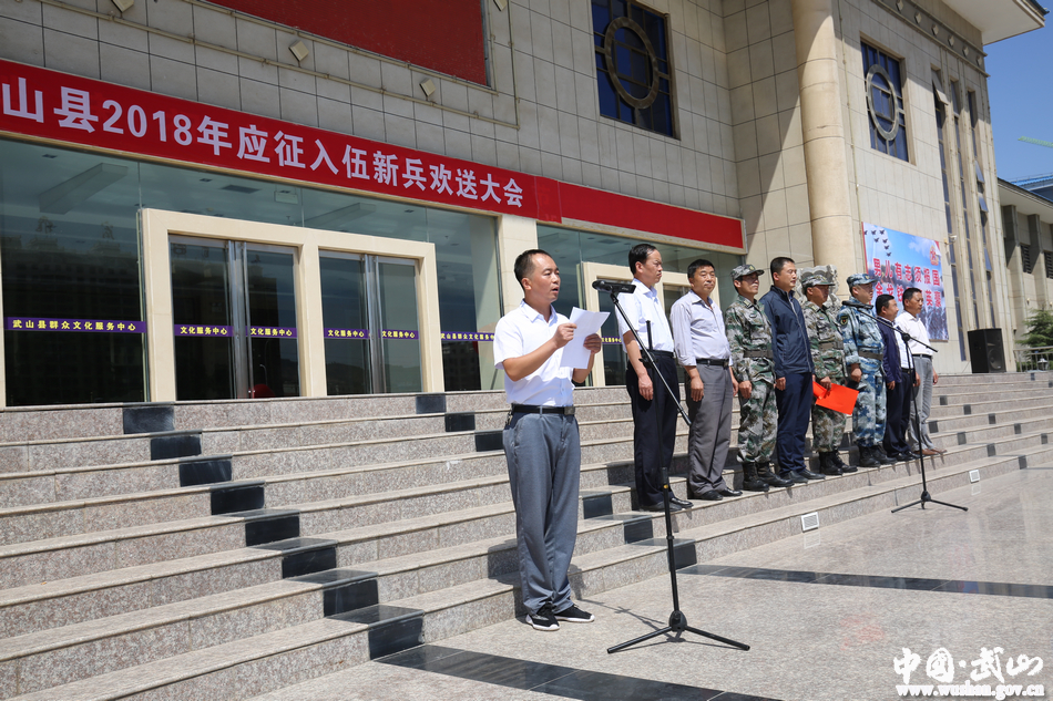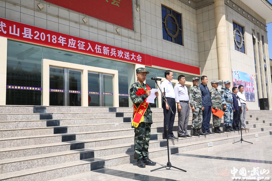 李康寧代表縣委、縣政府向入伍新兵表示熱烈祝賀。他說,武山人民有著愛軍崇武、送子參軍的光榮傳統(tǒng)。無論是革命戰(zhàn)爭年代還是和平建設時期,無數(shù)武山優(yōu)秀青年,奔赴軍營,投身國防,為革命事業(yè)和保衛(wèi)祖國奉獻了青春,充分體現(xiàn)了武山青年愛黨、愛國、愛家鄉(xiāng)的優(yōu)秀品質(zhì)。他希望,新兵們到部隊后,要牢記使命、崇尚榮譽,樹立遠大理想,把滿腔熱血化為報國之志,把家鄉(xiāng)人民的厚望化為自己的強大動力,在崗位成長成才,在軍營建功立業(yè),用實際行動保衛(wèi)祖國的繁榮與人民的安寧;要服從命令,聽從指揮,嚴格遵守部隊的紀律和各項規(guī)章制度,認真學習軍事理論,苦練過硬軍事本領,不斷提高自身綜合素質(zhì),爭做新時期優(yōu)秀合格軍人;要牢記父母親人的囑托,牢記家鄉(xiāng)人民的殷切希望,用自己的實際行動向黨和人民,向家鄉(xiāng)父老交上一份滿意答卷,為家鄉(xiāng)爭光添彩。