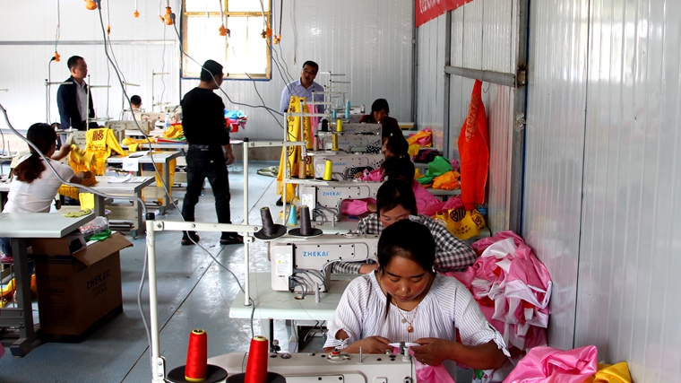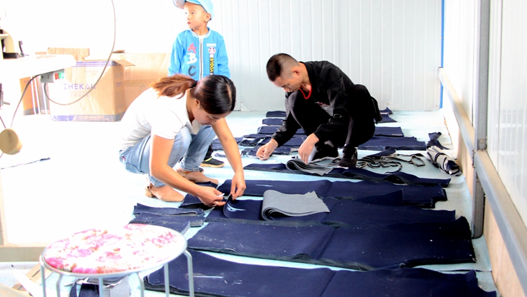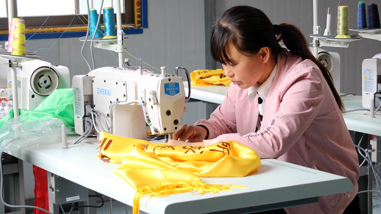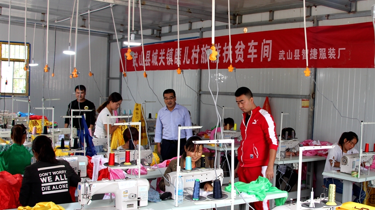 日前,在城關(guān)鎮(zhèn)磨兒村扶貧車間內(nèi),呈現(xiàn)出一片忙碌的景象,只見工人們在縫紉機上緊張有序的進行著穿線、縫衣、鎖邊等工作,一件件衣物在工人們手中快速成型。