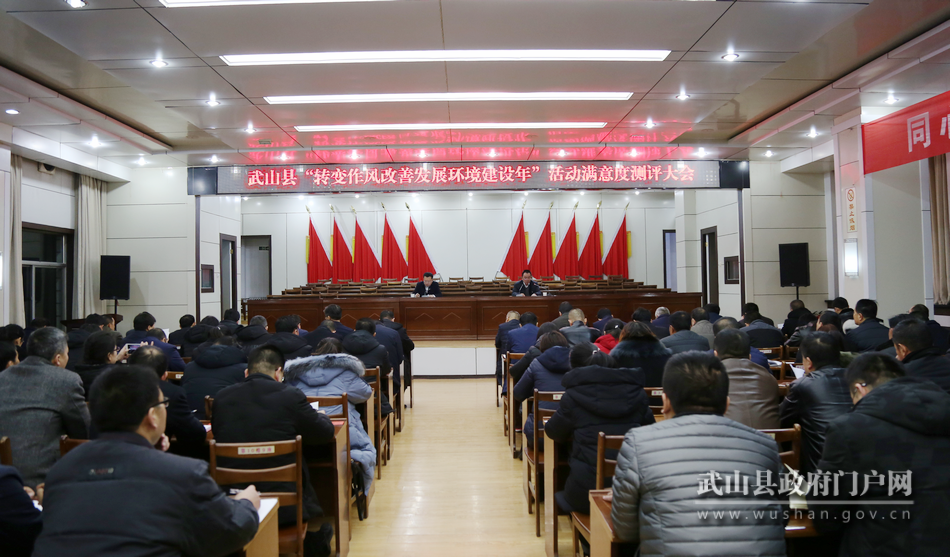 1月9日晚上,武山縣召開(kāi)全縣“轉(zhuǎn)變作風(fēng)改善發(fā)展環(huán)境建設(shè)年”活動(dòng)滿意度測(cè)評(píng)大會(huì),對(duì)15個(gè)鄉(xiāng)鎮(zhèn)、112個(gè)縣直部門(mén)、單位作風(fēng)建設(shè)年活動(dòng)開(kāi)展情況進(jìn)行第三方滿意度測(cè)評(píng)?h紀(jì)委書(shū)記、監(jiān)委主任、縣作風(fēng)建設(shè)年活動(dòng)領(lǐng)導(dǎo)小組副組長(zhǎng)王濤主持會(huì)議,縣委常委、組織部部長(zhǎng)、縣作風(fēng)建設(shè)年活動(dòng)領(lǐng)導(dǎo)小組副組長(zhǎng)兼辦公室主任高朝峰通報(bào)全縣作風(fēng)建設(shè)年活動(dòng)開(kāi)展情況?h作風(fēng)建設(shè)年活動(dòng)領(lǐng)導(dǎo)小組辦公室副主任,部分縣級(jí)黨代表、人大代表、政協(xié)委員,縣作風(fēng)建設(shè)年活動(dòng)監(jiān)督員,企業(yè)負(fù)責(zé)人代表、群眾代表等共100余人參加會(huì)議。