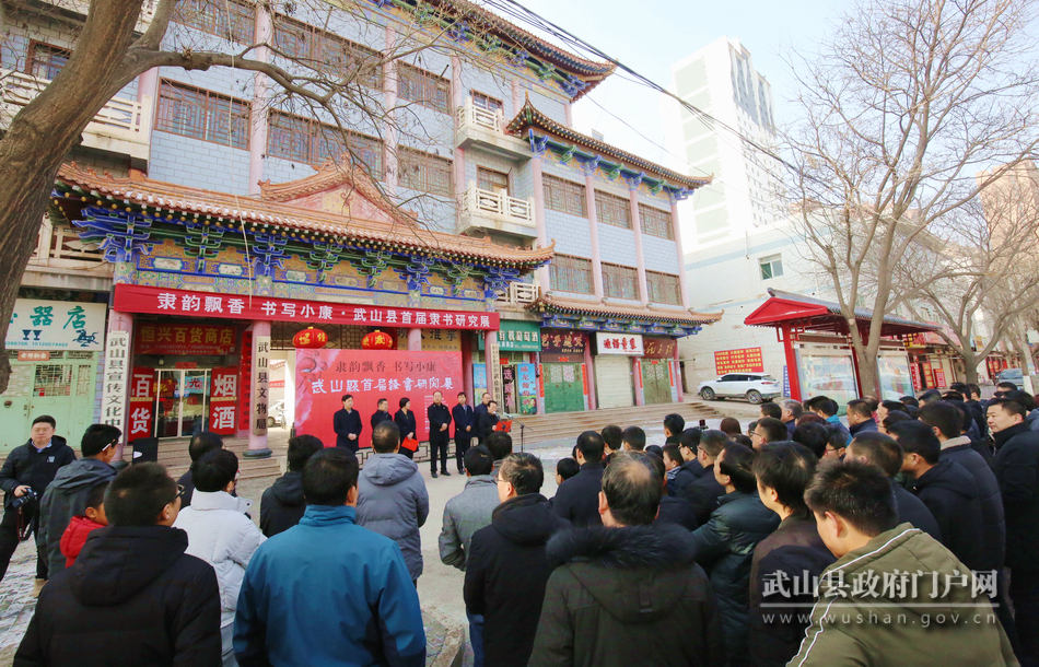 為弘揚中華傳統(tǒng)文化,營造歡快祥和的新春佳節(jié)氛圍,2月13日,“隸韻飄香 書寫小康”武山縣首屆隸書研究展在寧遠(yuǎn)書畫院開展。縣委常委、統(tǒng)戰(zhàn)部長孫德銀出席開展儀式并致辭,縣人大常委會副主任謝勇、縣政協(xié)副主席郭遠(yuǎn)出席開展儀式,縣直相關(guān)部門和單位負(fù)責(zé)人、書畫藝術(shù)界代表參加開展儀式并觀看了展覽?h政府副縣長高春霞主持開展儀式。