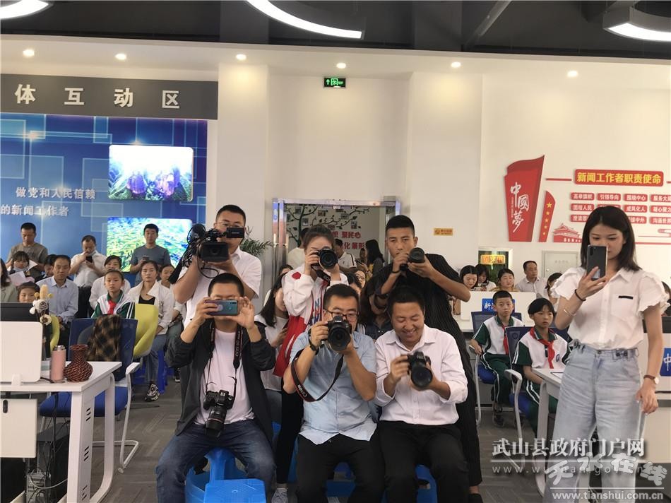 活動中,為榮獲“新時代武山好少年”的35名同學(xué)頒發(fā)了榮譽證書和獎品,在融媒體中心業(yè)務(wù)人員的帶領(lǐng)下參觀了指揮中心、演播室、錄音室、新聞制作室,并與前方采訪的記者進行了遠程連線;顒蝇F(xiàn)場氣氛熱烈,通過切身體驗,與主持人面對面交流,給同學(xué)們留下了難忘的經(jīng)歷。