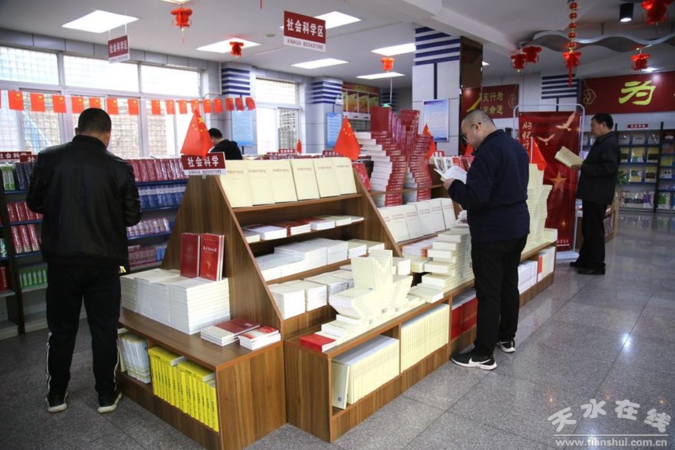 武山縣新華書店副經(jīng)理黨存學(xué)介紹,為了配合黨史學(xué)習(xí)教育持續(xù)扎實(shí)有效開展,新華書店積極發(fā)揮文化宣傳窗戶作用,設(shè)立了專柜,配齊了黨史學(xué)習(xí)相關(guān)讀物,擺放相關(guān)的宣傳廣告標(biāo)語,還做了黨史類的書目書單,派送給機(jī)關(guān)單位以及廣大群眾。