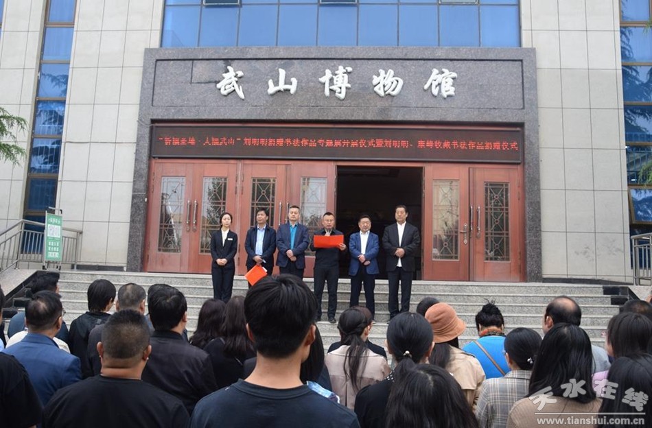 為迎接第四十五個(gè)“國(guó)際博物館日”,弘揚(yáng)中華優(yōu)秀傳統(tǒng)文化,展現(xiàn)書(shū)法藝術(shù)的無(wú)窮魅力,5月18日上午,“祈福圣地?大福武山”劉明明捐贈(zèng)書(shū)法作品專(zhuān)題展暨劉明明、康峰收藏書(shū)法作品捐贈(zèng)儀式在縣博物館舉行。副縣長(zhǎng)金學(xué)民出席儀式并致辭,縣政協(xié)副主席郭遠(yuǎn),中國(guó)書(shū)法協(xié)會(huì)會(huì)員、展覽書(shū)法作品捐贈(zèng)人劉明明,中國(guó)書(shū)法協(xié)會(huì)會(huì)員、書(shū)法作品捐贈(zèng)人康峰,縣直相關(guān)部門(mén)和單位負(fù)責(zé)人,寧遠(yuǎn)書(shū)畫(huà)院、縣文旅系統(tǒng)干部職工,武山縣書(shū)法愛(ài)好者共計(jì)100余人參加。