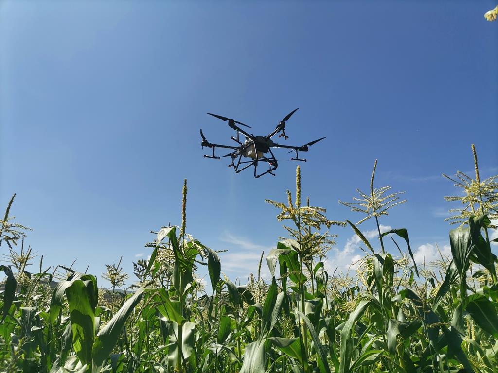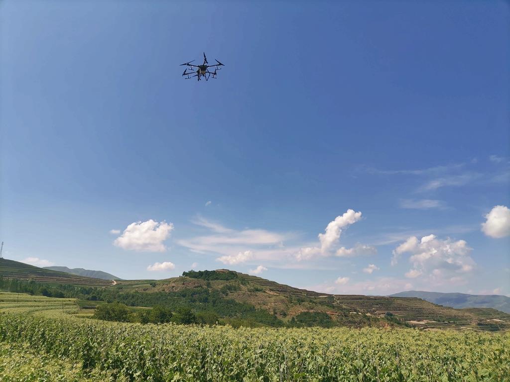 7月19日,武山縣樺林鎮(zhèn)寨子村的村民用植保無人機給農(nóng)作物噴藥。一桶60斤的藥水用10分鐘時間就可噴灑20畝田地。(照片: 郭永強 頡宏斌 薛妍 楊彥春)