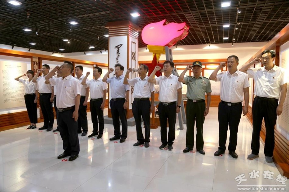 縣紅軍長(zhǎng)征強(qiáng)渡渭河紀(jì)念館是全省愛(ài)國(guó)主義教育基地、武警甘肅總隊(duì)紅色教育基地和革命傳統(tǒng)教育基地。王新強(qiáng)帶領(lǐng)縣四大組織領(lǐng)導(dǎo)來(lái)到這里,深刻感悟1935年至1936年紅軍三大主力過(guò)境武山和武山早期黨組織建設(shè)的歷史,緬懷革命先烈,接受革命傳統(tǒng)教育,傳承紅色基因,重溫入黨誓詞。