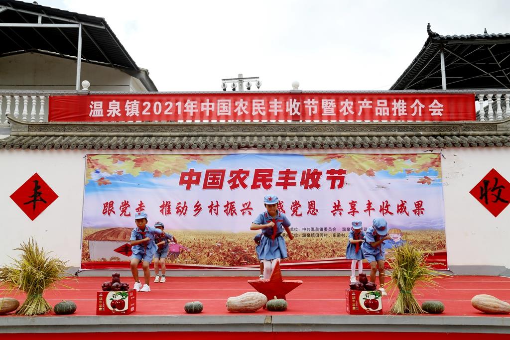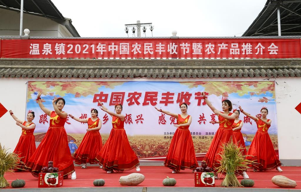 “百年風華感黨恩,產業(yè)興旺慶豐收”。在溫泉鎮(zhèn),到處都能感受到豐收的喜悅,山上東梁蘋果散發(fā)著果香掛滿枝頭,山腳下的稻田里沉甸甸的稻穗壓彎了腰。