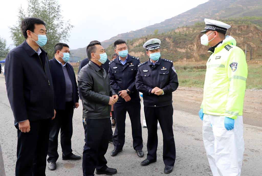 武山縣融媒體中心10月27日訊(記者 蒲愛民 管秋勇)10月27日,縣委書記王新強(qiáng)深入樺林、鴛鴦、灘歌等鄉(xiāng)鎮(zhèn)檢查指導(dǎo)疫情防控工作。他強(qiáng)調(diào),全縣各級(jí)各部門要時(shí)刻繃緊疫情防控之弦,切實(shí)增強(qiáng)疫情防控的責(zé)任感、緊迫感,高度警醒、高度警惕、高度戒備,從嚴(yán)落實(shí)防控責(zé)任,精心做好應(yīng)急準(zhǔn)備,織密織牢疫情防控安全網(wǎng)?h委常委、紀(jì)委書記、監(jiān)委主任李康寧,縣委常委、政法委書記令軍強(qiáng),縣委常委、宣傳部部長(zhǎng)胡麗霞,縣政府黨組成員、縣公安局黨委書記、公安局局長(zhǎng)溫阿軍一同檢查。