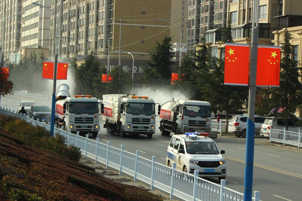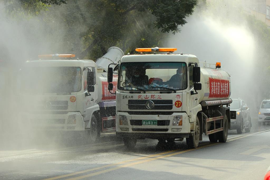 此次消殺主要在城區(qū)主次街道、巷道、小區(qū)、公園、公廁、學校、賓館、農(nóng)貿(mào)市場等公共區(qū)域,采用灑水車、小型高壓沖洗車、霧化噴霧機等進行消殺作業(yè)。
