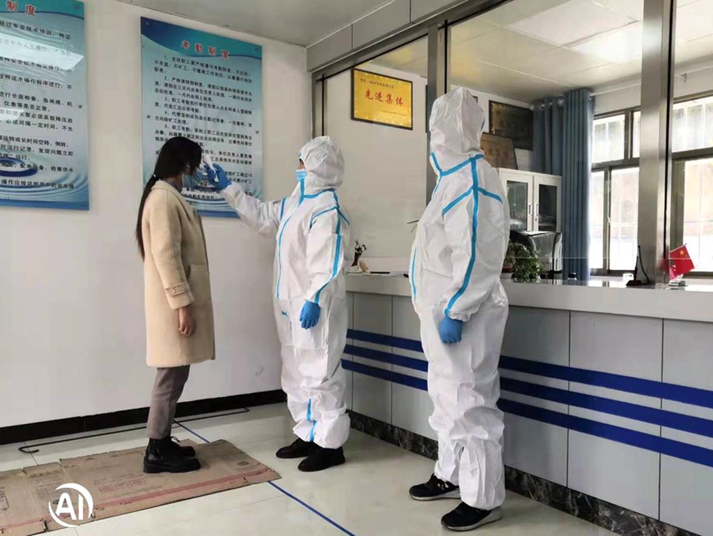 請(qǐng)大家排好隊(duì),打開(kāi)健康碼,最近出過(guò)遠(yuǎn)門(mén)嗎,家里人有從外地返回的沒(méi)有?測(cè)溫、登記、刷卡充值。姚金萍和李小芳,每天穿著防護(hù)服,堅(jiān)守在灘歌供水站繳費(fèi)大廳,一個(gè)測(cè)溫登記、一個(gè)辦理充卡業(yè)務(wù),分工協(xié)作、配合默契。站長(zhǎng)金鎖每天要通過(guò)三道關(guān)卡去水源地和集中供水點(diǎn)消殺巡線。