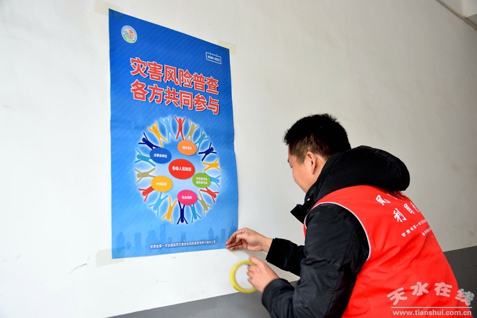 (普查員在武山縣應(yīng)急管理局張貼宣傳海報(bào))